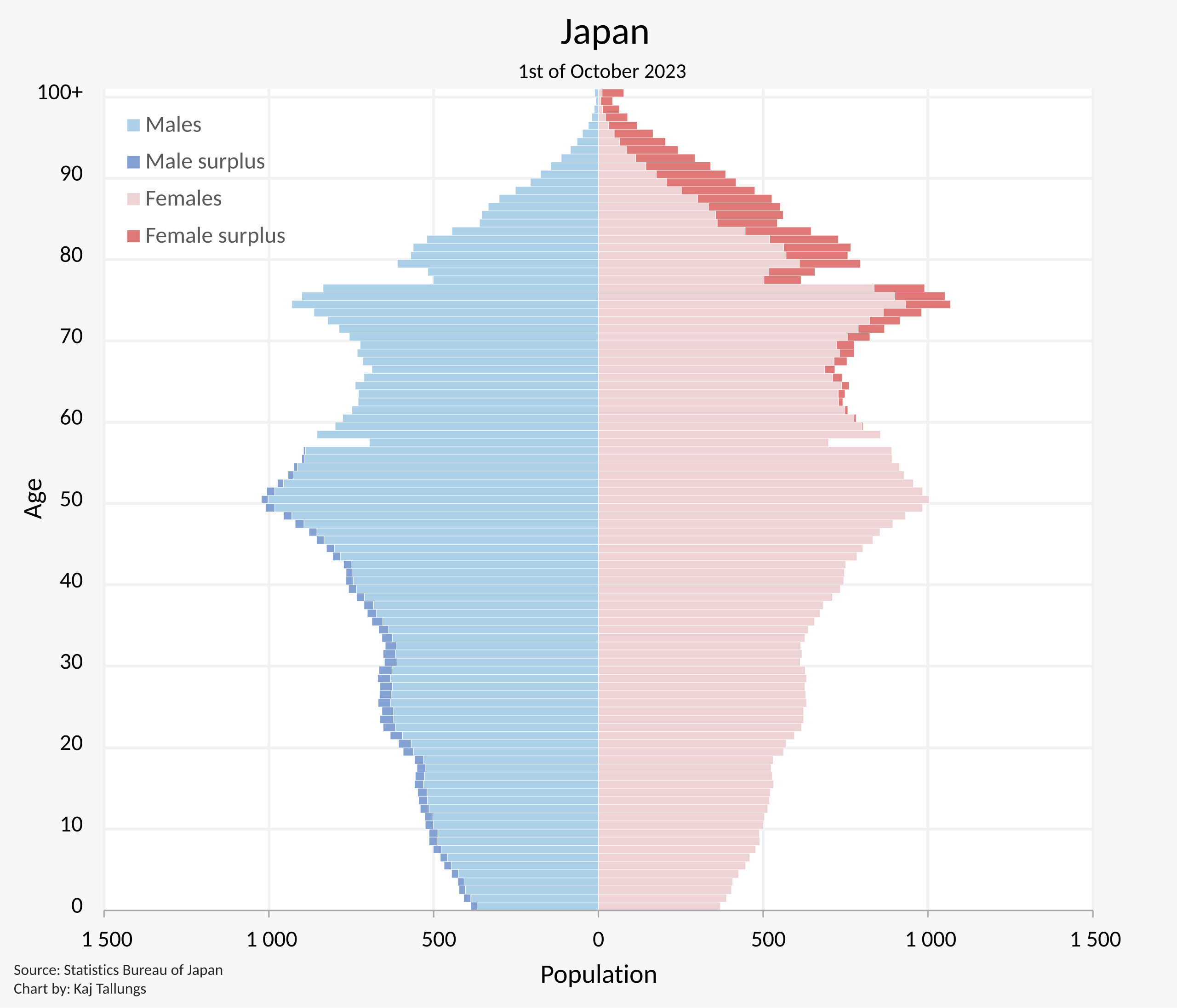 Japan, for instance, has seen a marked inversion of its population pyramid which threatens the loss of important production knowledge in the economy.