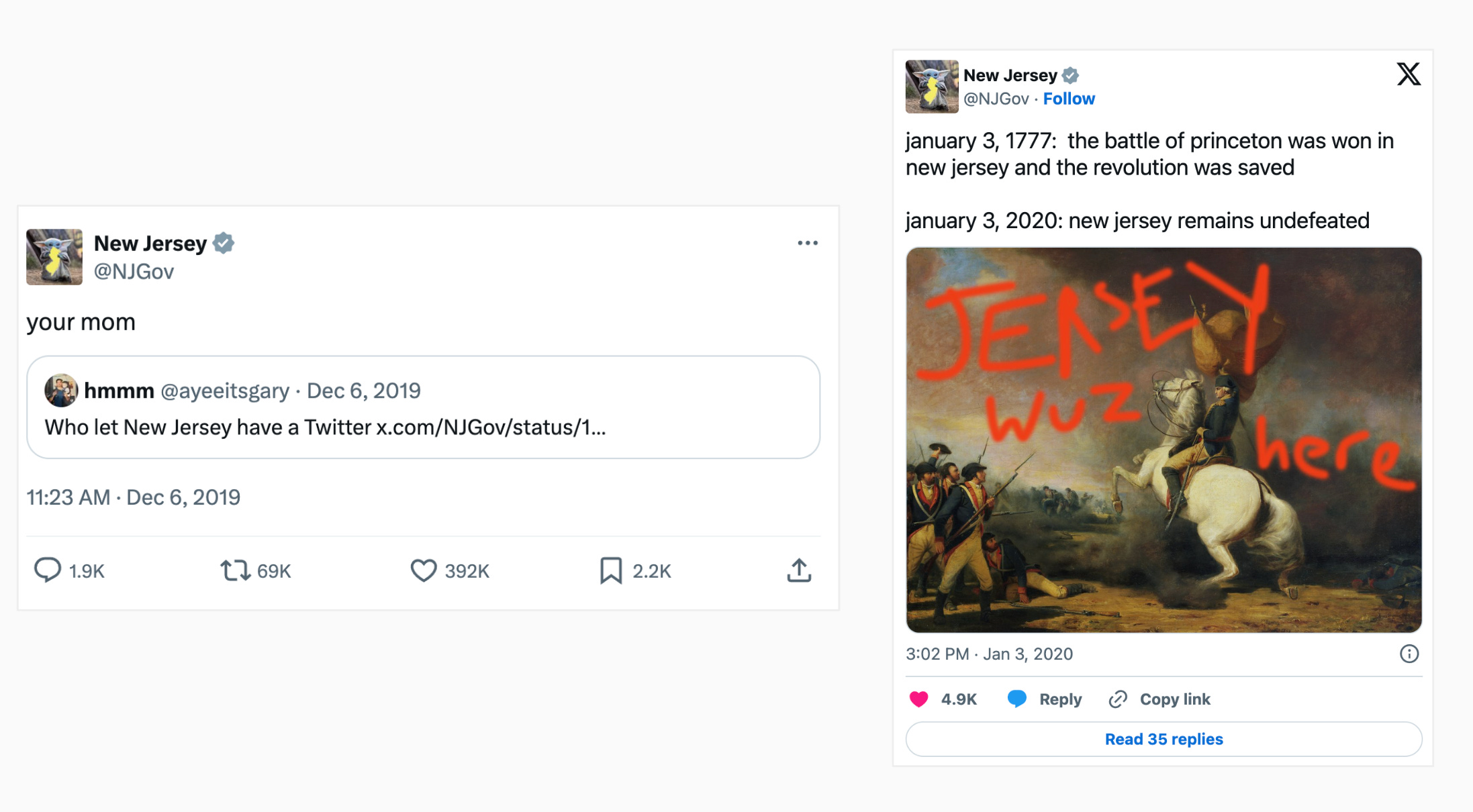 What I especially loved about New Jersey was that people didn’t sugarcoat anything. It was real. New Jersey is tough, fun, authentic, and unfiltered. And the state has leaned into this idea of itself. Even the official New Jersey Twitter account picks fights with Delaware and casually responds to tweets with “your mom” and “JERSEY wuz here.”